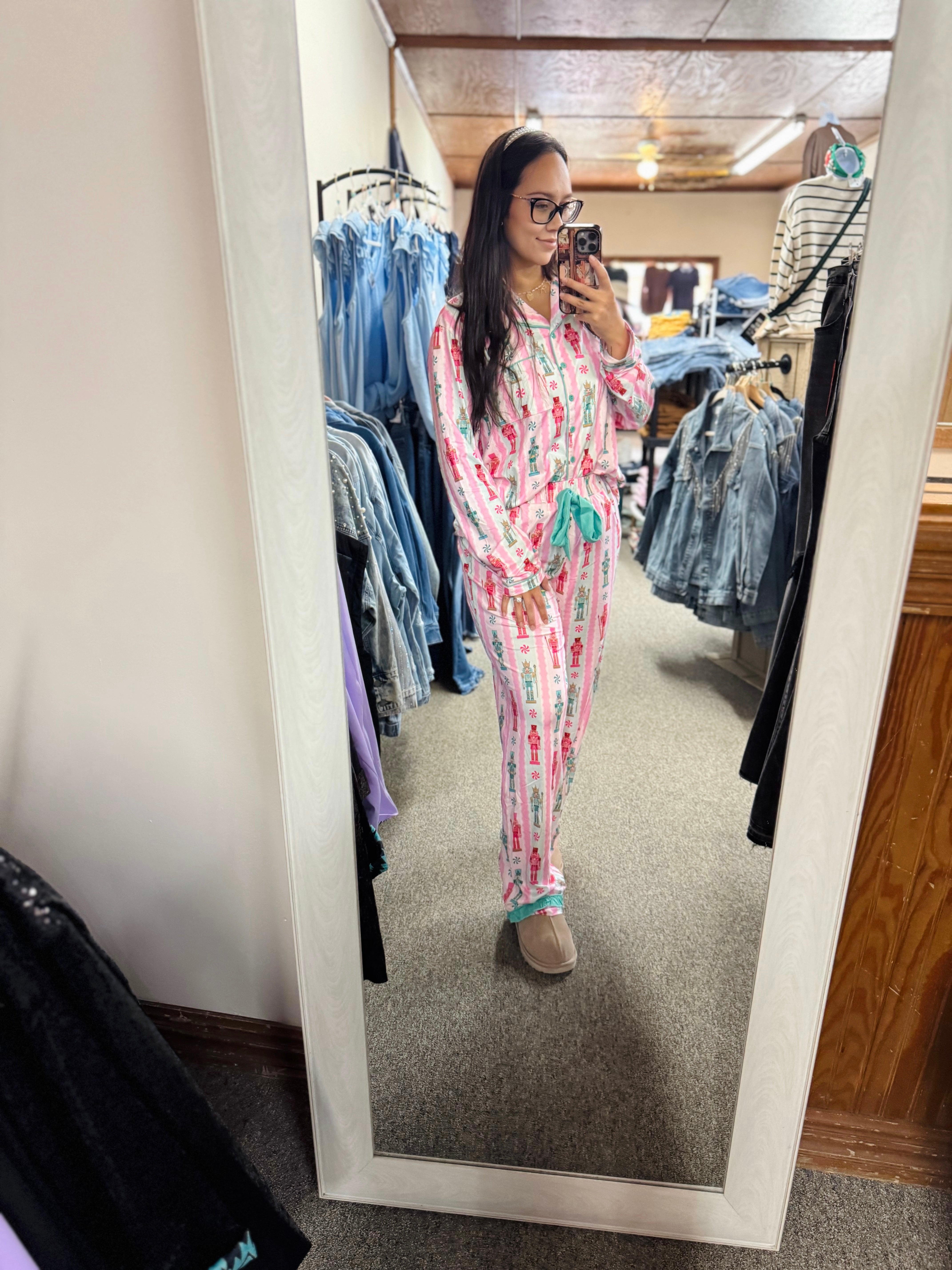Transform bedtime into a magical experience with our Nutcracker Magic Ruffle Pajama Set. Made with luxe materials, the pink nutcracker design is adorned with playful ruffles that add a touch of whimsy. Sleep in style and comfort with this enchanting set.