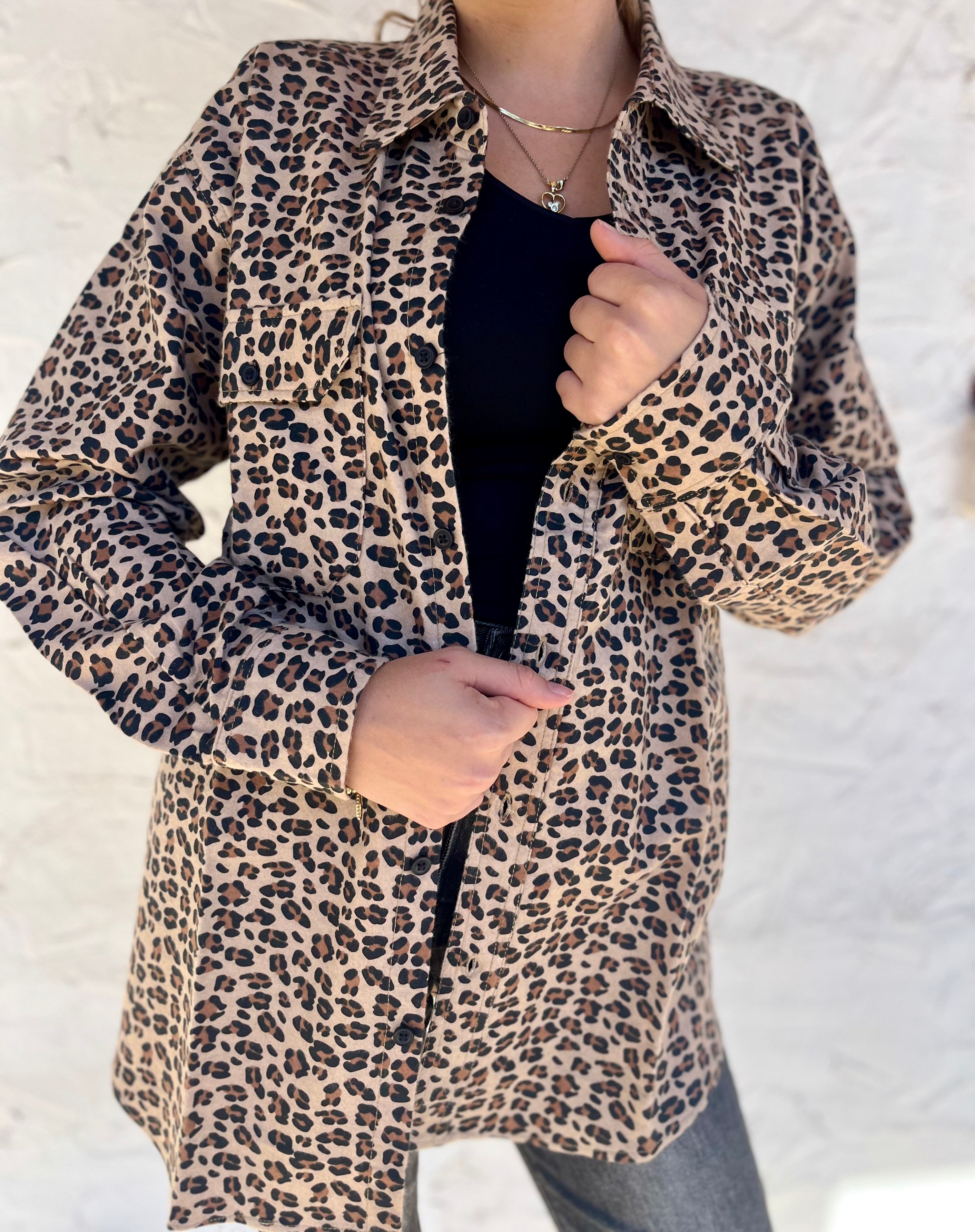 Elevate your style with our luxurious Animal Print Flannel! This oversized piece is the perfect layering option for any occasion. With its bold animal print, you'll make a statement while staying cozy and comfortable. Stand out in style and turn heads with this must-have addition to your wardrobe.