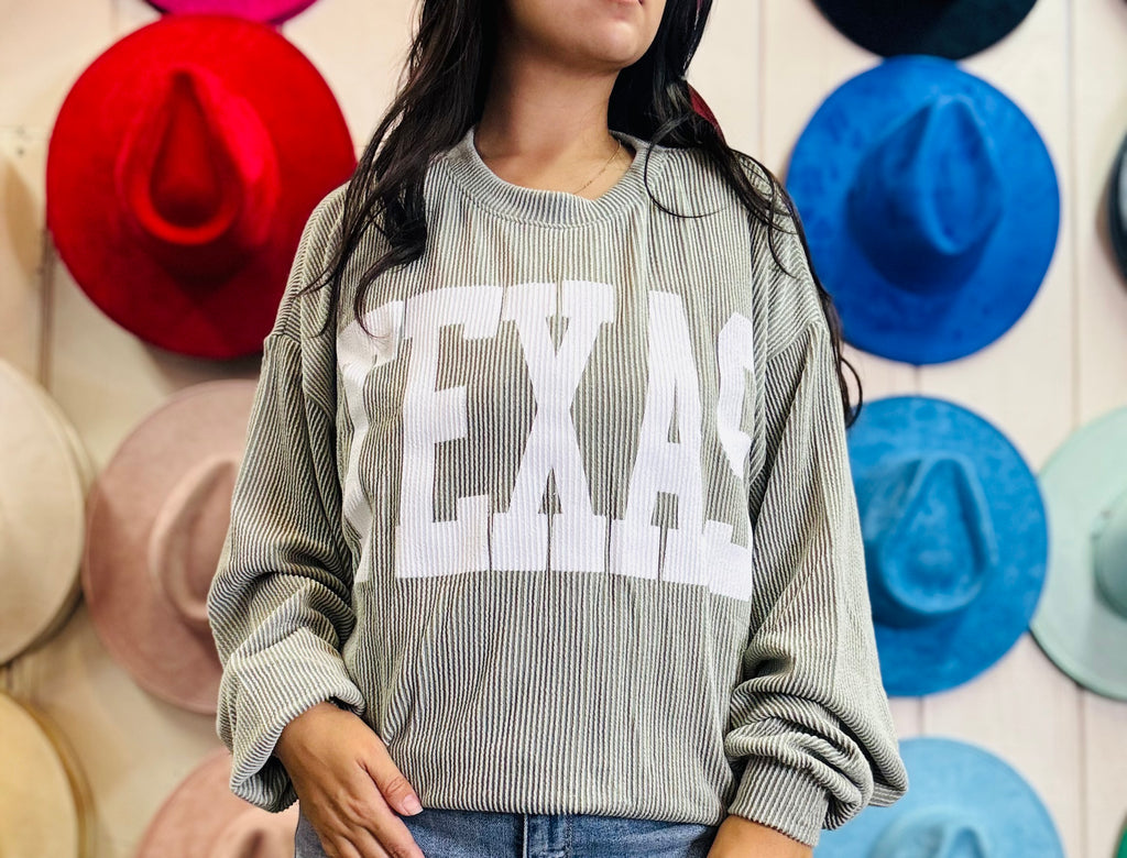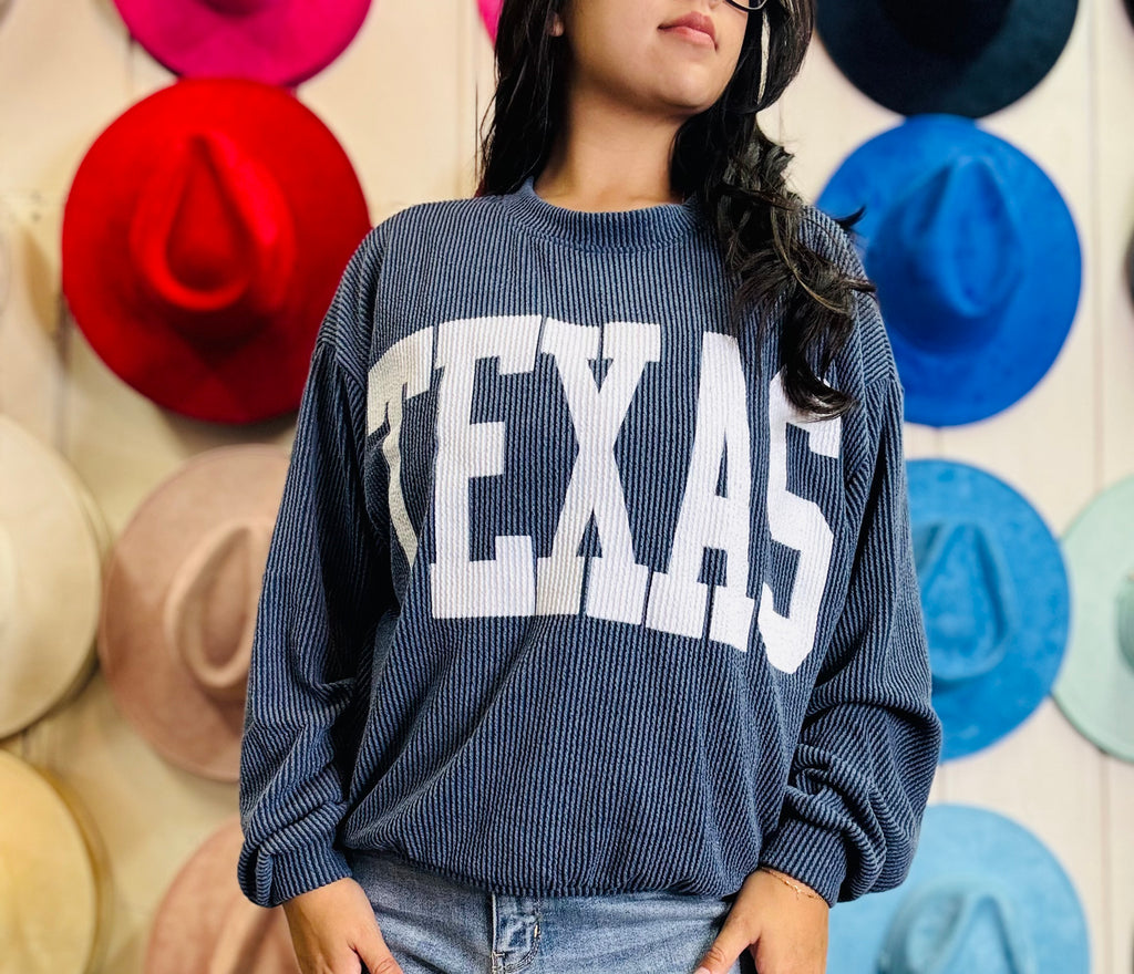Get the best of style and comfort with our TEXAS Textured Sweatshirt. Made with lightweight material, this sweatshirt is perfect for any casual occasion. Stay stylish and cozy all day long!