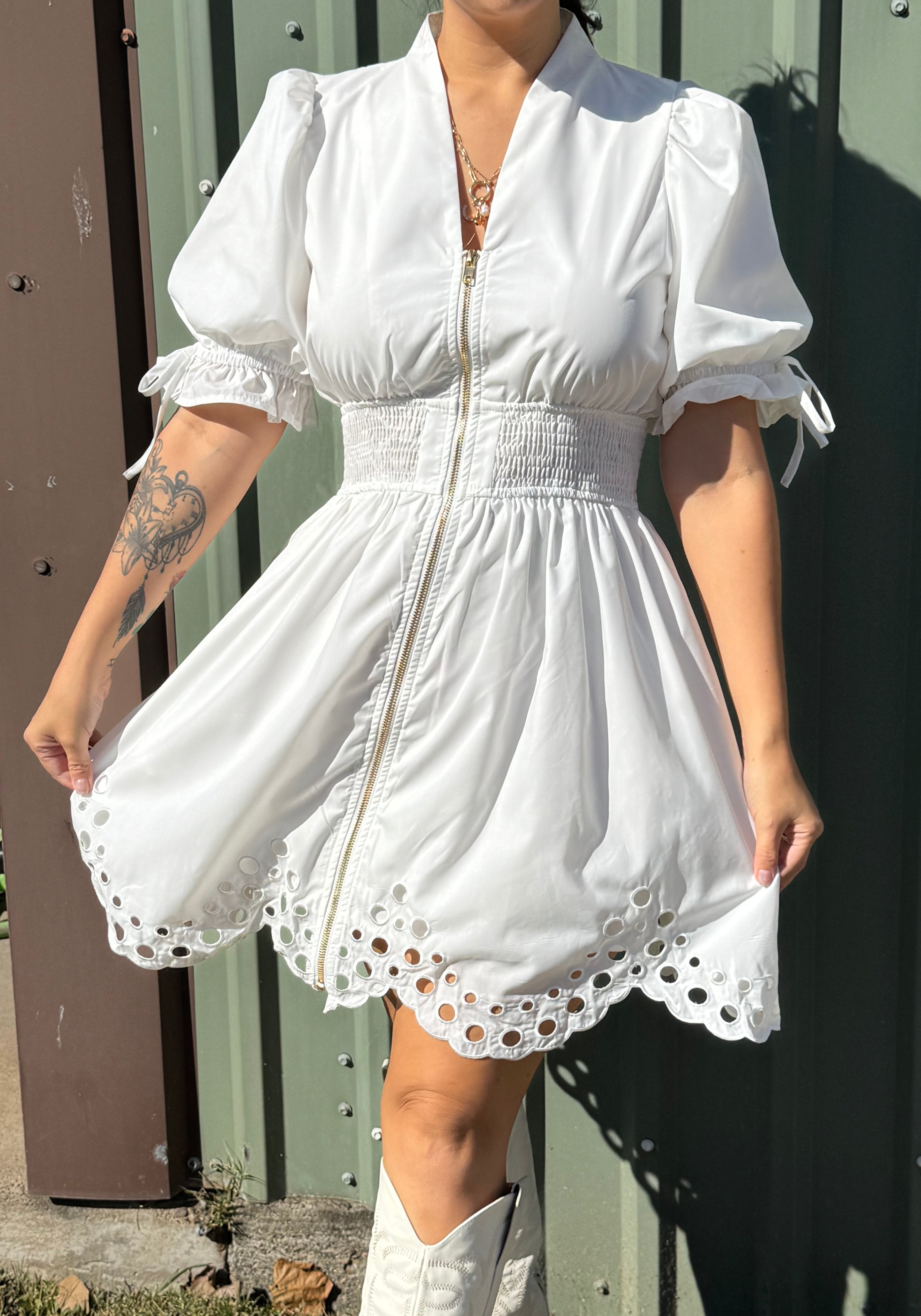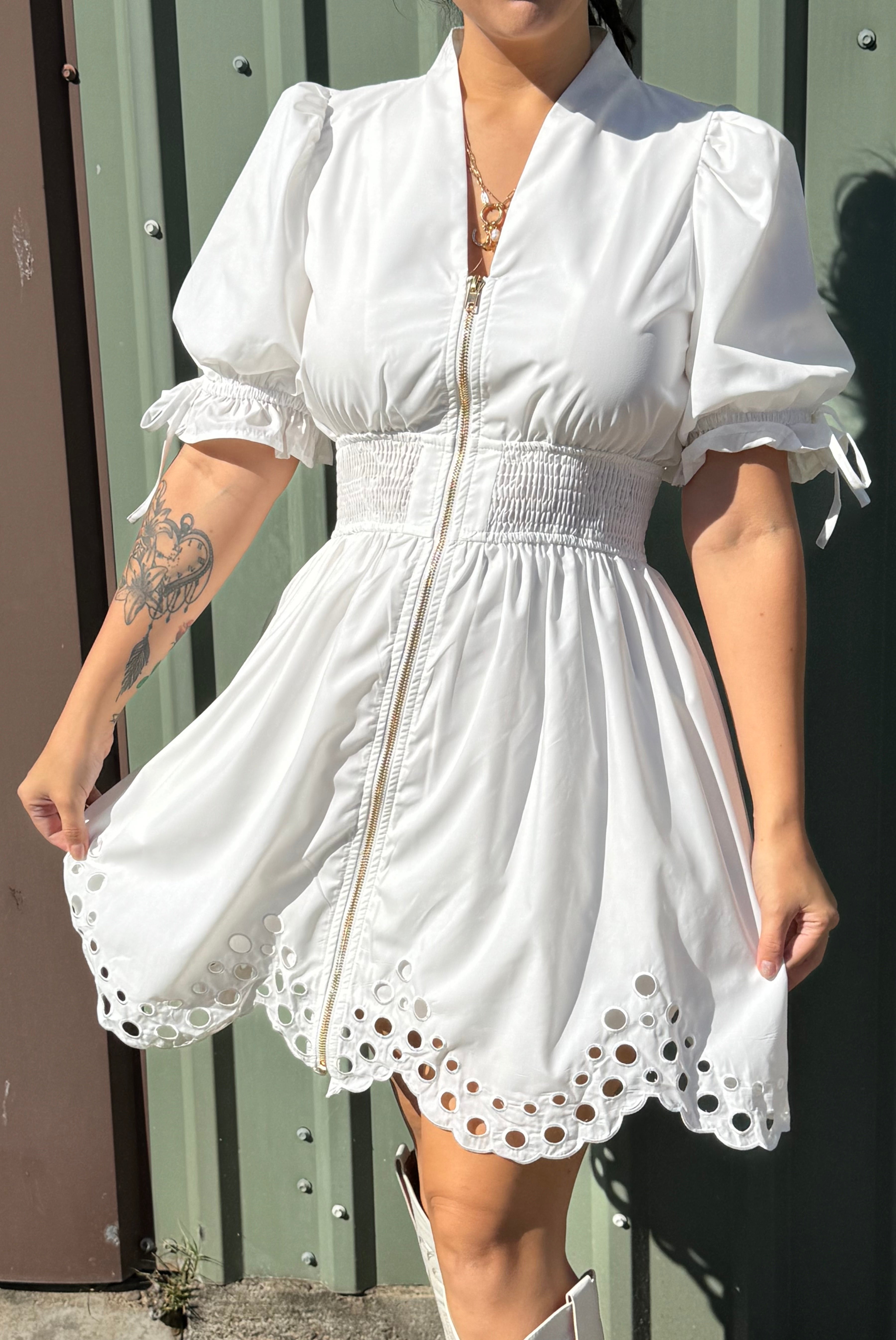 Eyelet you ivory zipper dress