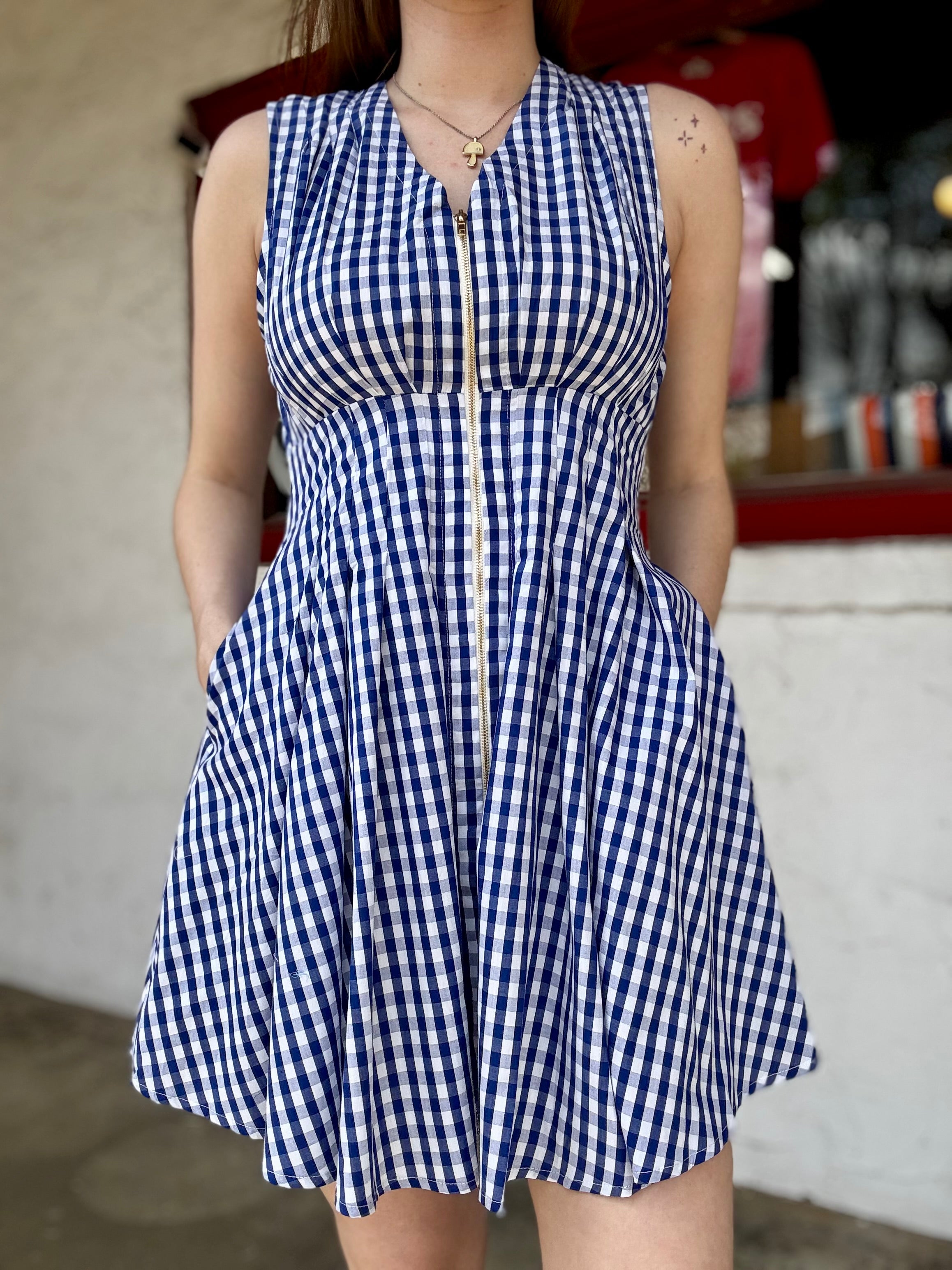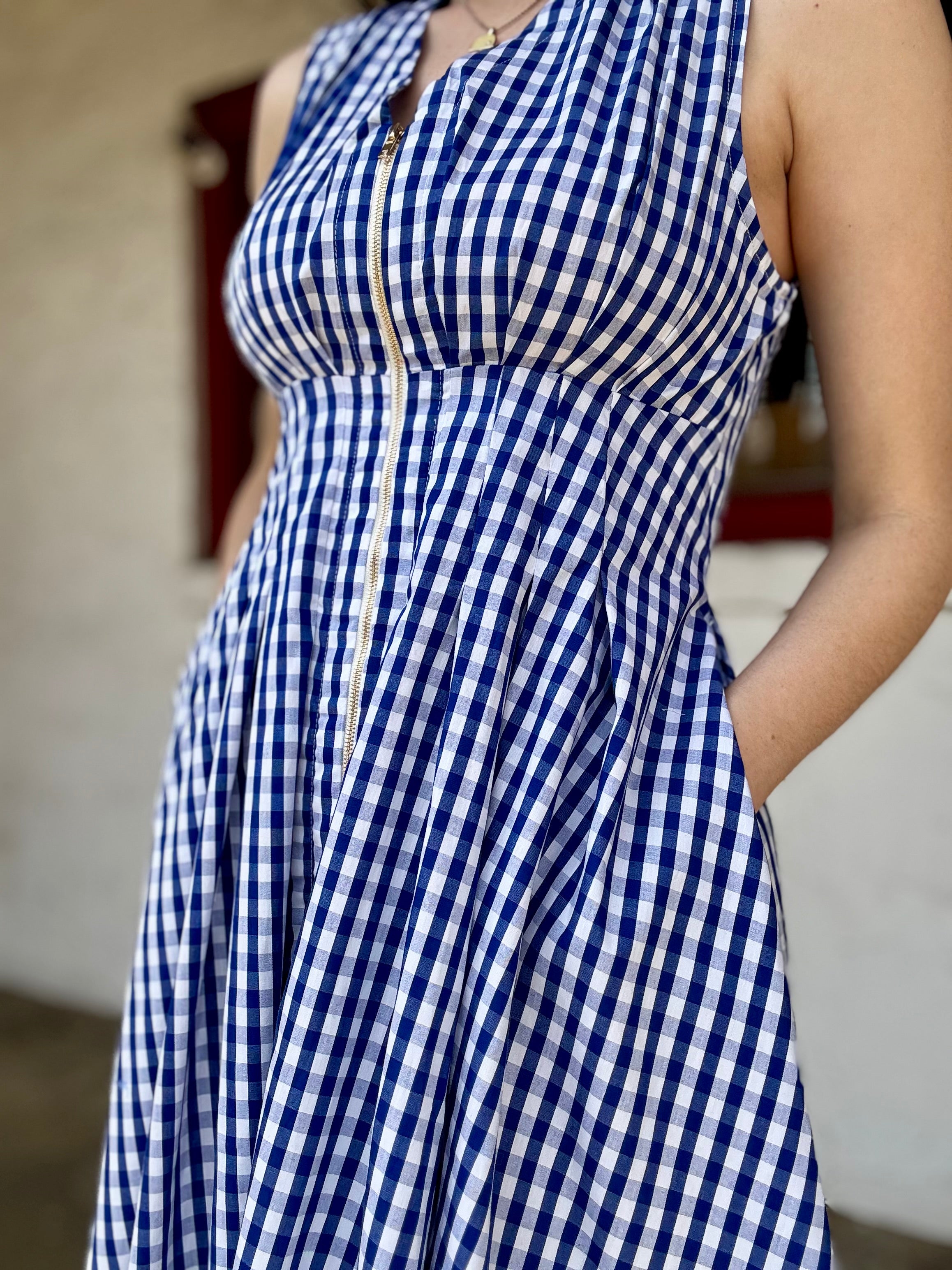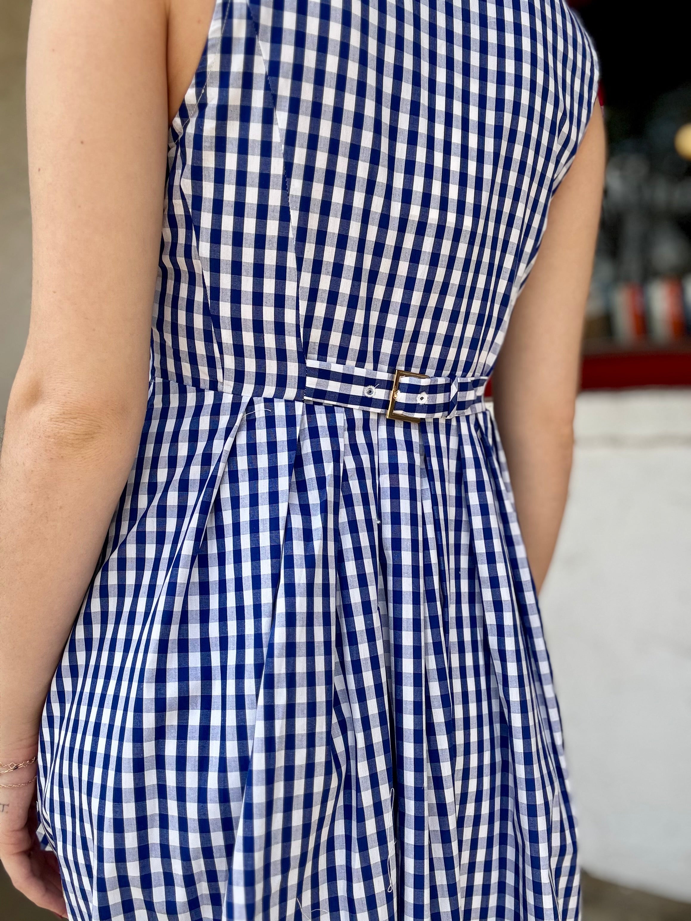 Gingham navy sleeveless dress