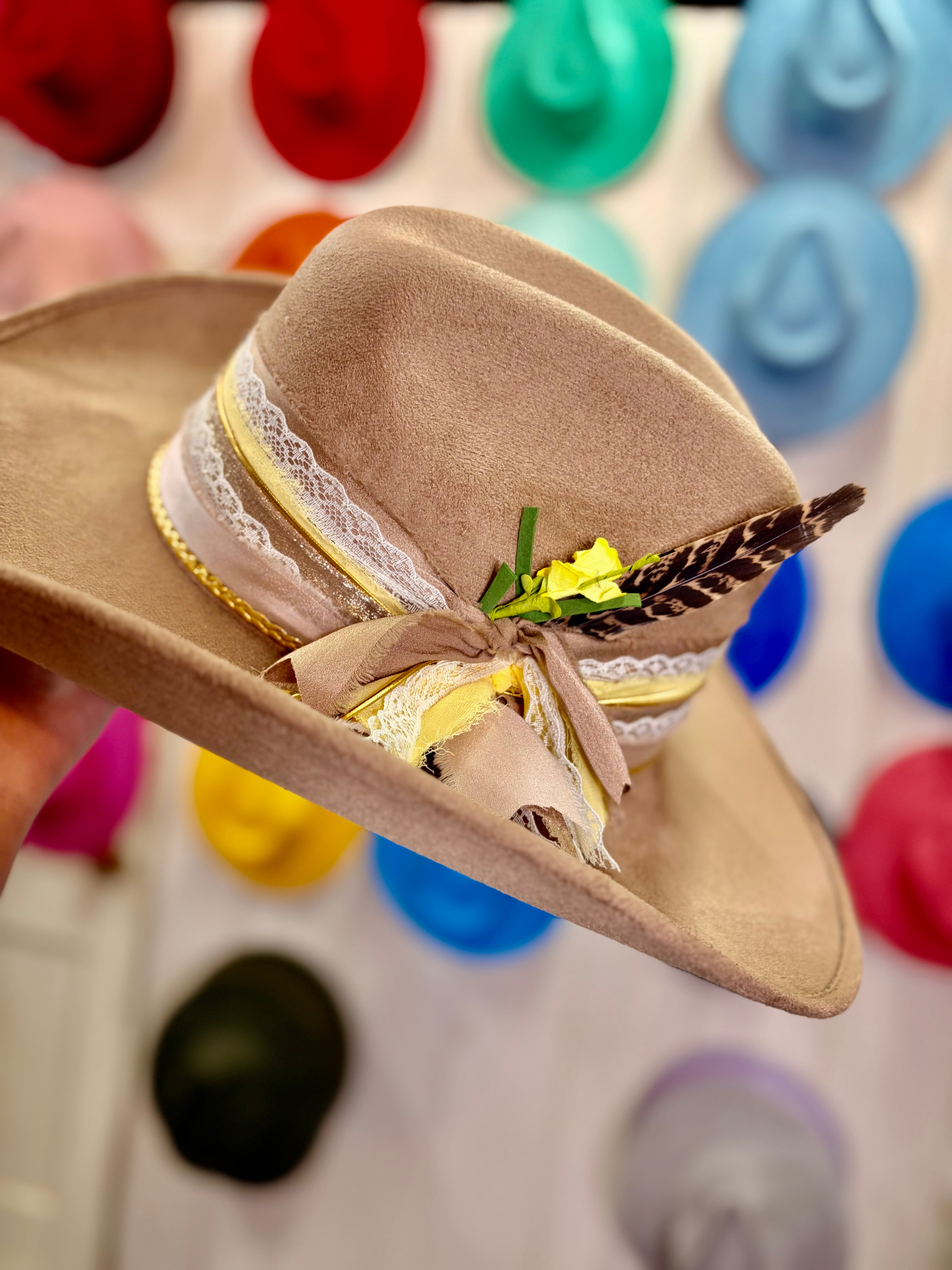 Get ready to tip your hat to spring with the Here Comes the Sun Vegan Suede Cowgirl Hat! This bright and playful accessory will have you feeling like a million bucks while keeping your conscience squeaky clean (thanks, vegan suede!). Perfect for those sunny days when you want to strut your stuff—yee-haw!