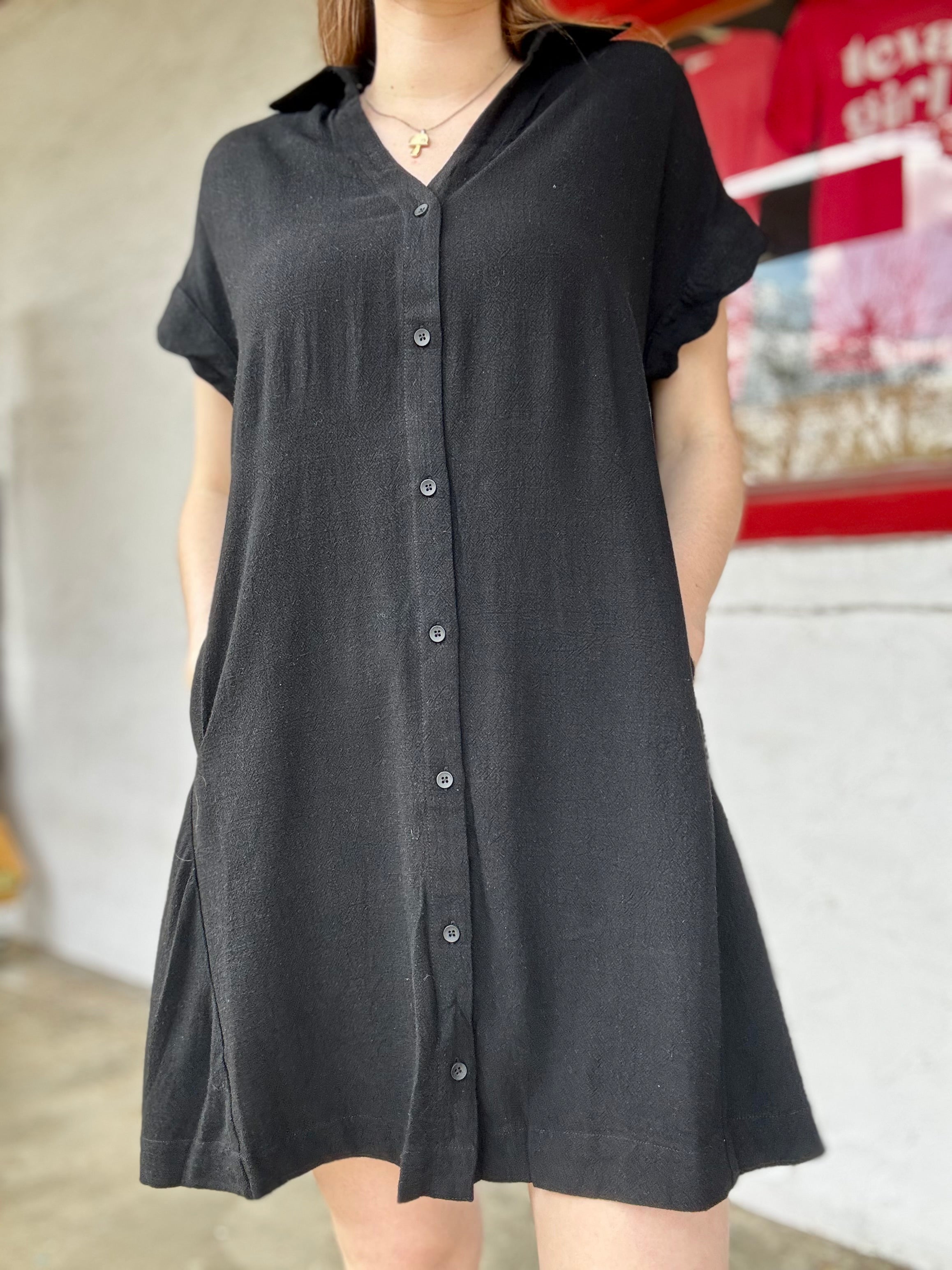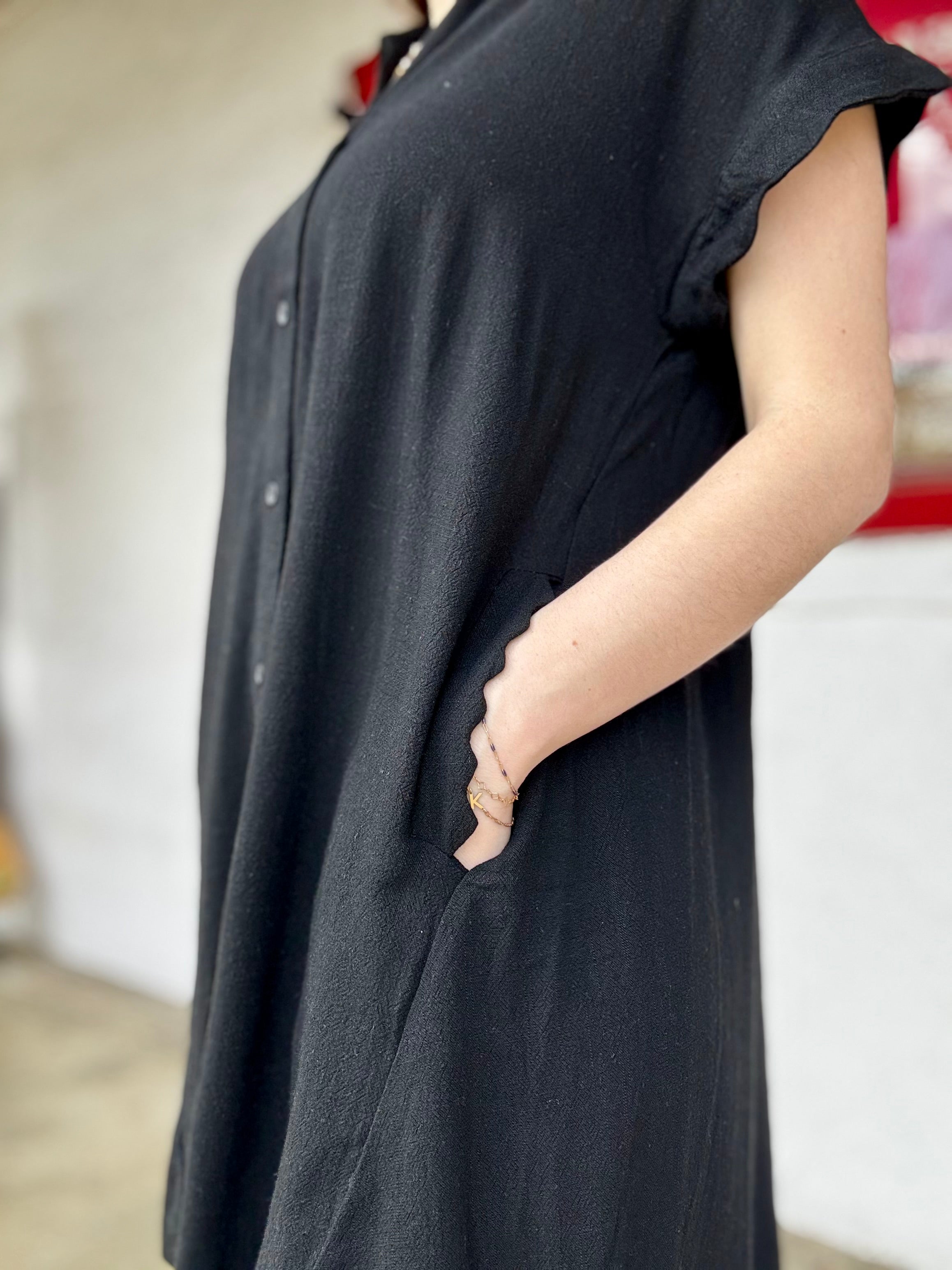 Discover the timeless charm of our Linen Scallop Black Dress. Crafted from a breathable linen blend, this button-down dress features a delightful scallop hem and a chic collared neckline, perfect for effortless elegance. Embrace versatility and comfort that transitions beautifully from day to night!