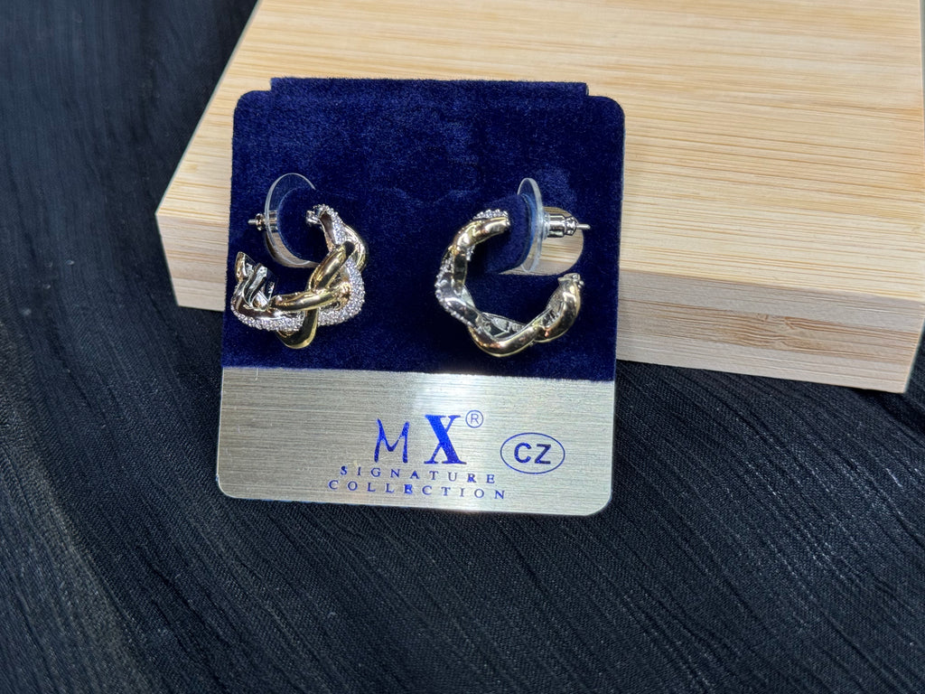 Discover the perfect blend of luxury and style with these braided gold-plated hoop earrings, accented with dazzling pave stones. Their intricate design adds texture and brilliance, making them an eye-catching accessory that effortlessly enhances any look, from everyday elegance to special events.