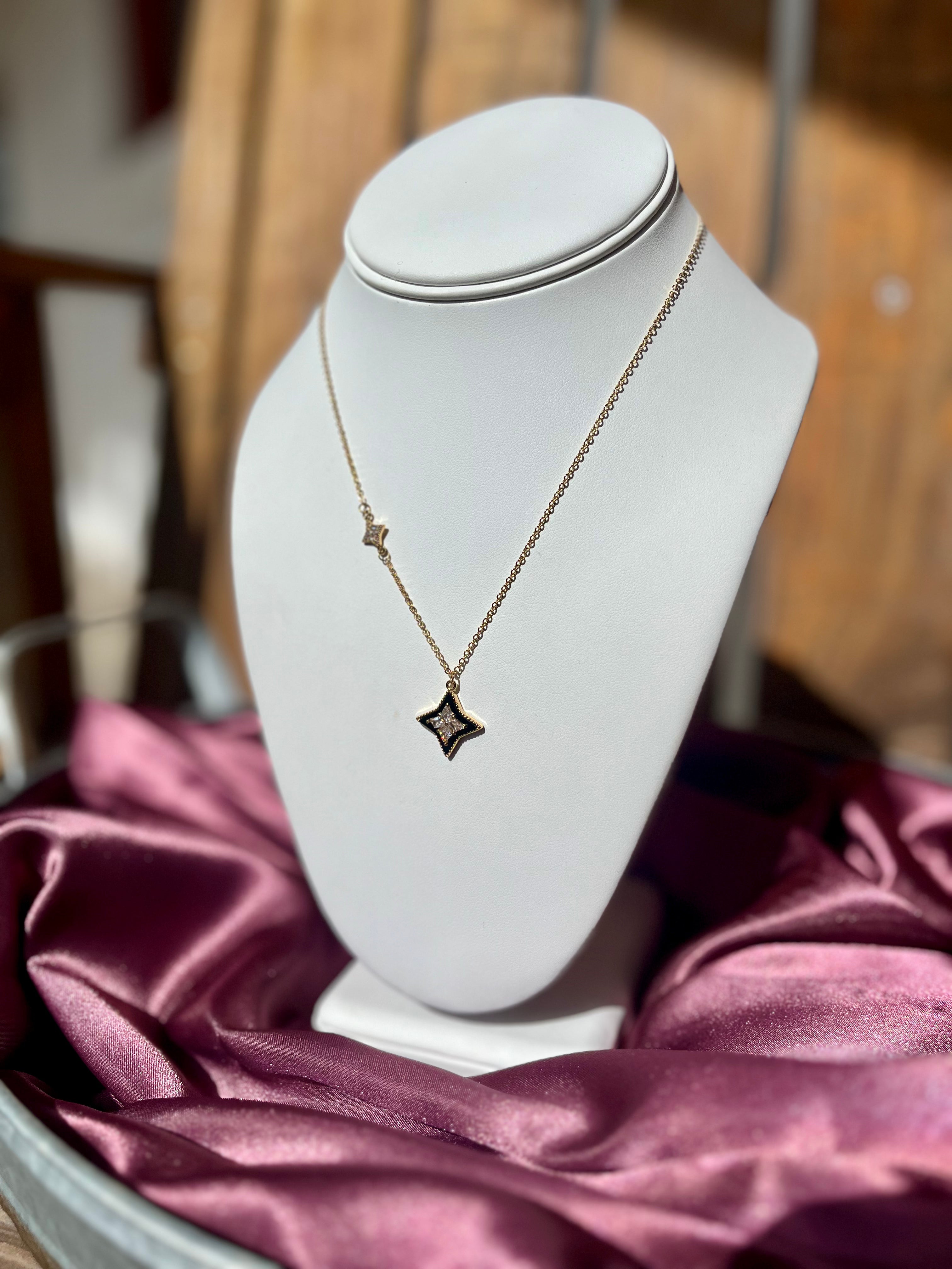Gold Onyx & 4 Point Star Necklace is backordered and will ship as soon as it is back in stock.