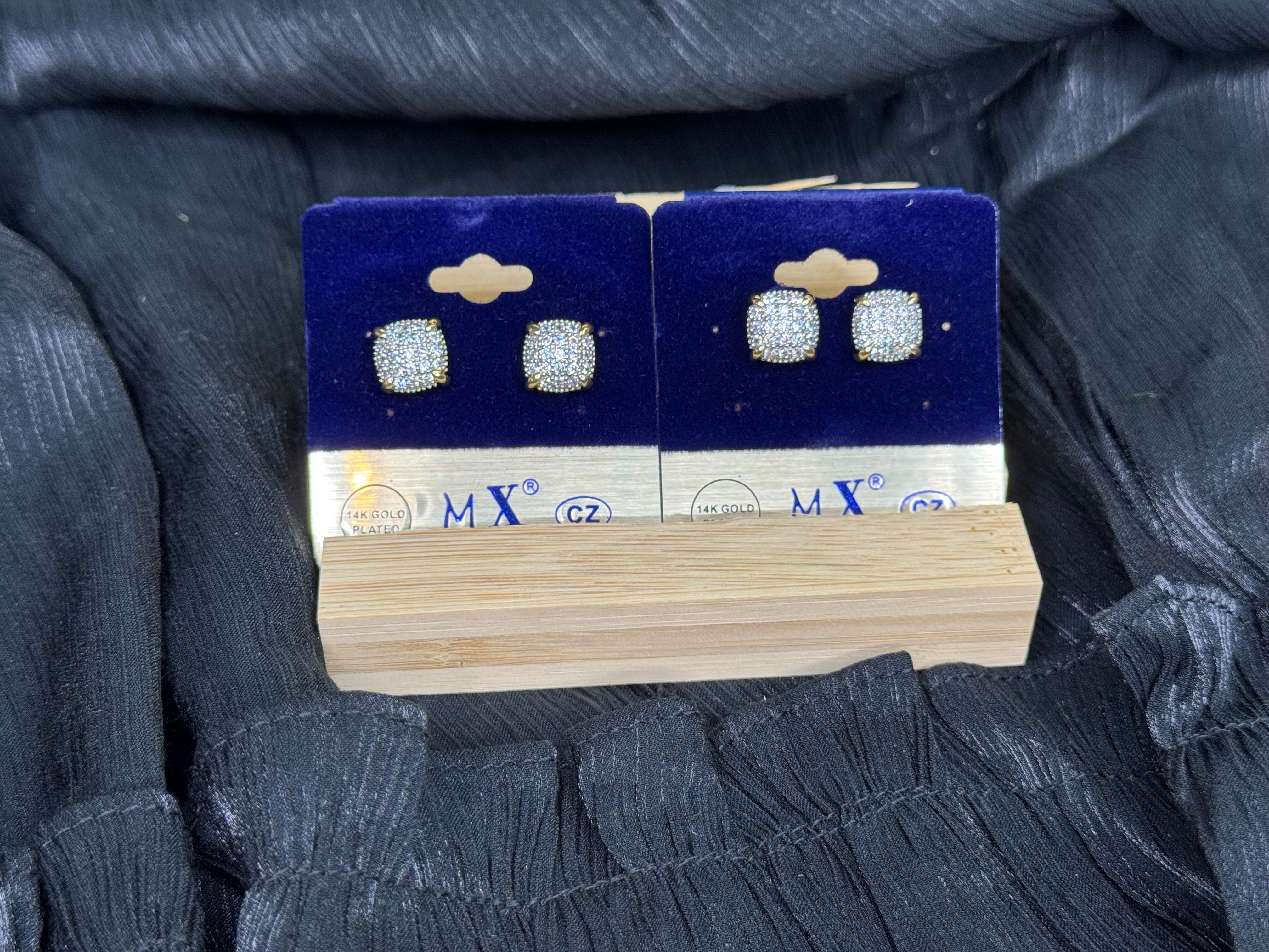 Discover the perfect blend of elegance and luxury with these 14k gold plated pave square stud earrings. Their dazzling pavé setting creates a brilliant shimmer, making them an eye-catching addition to any ensemble. Designed for those who appreciate refined craftsmanship, these studs effortlessly elevate your look from day to night.