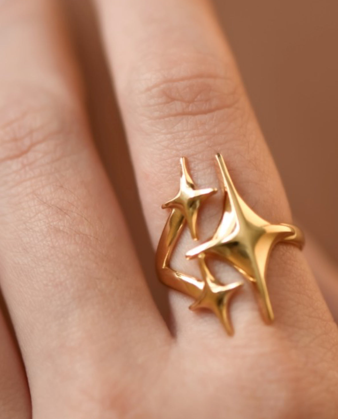 18 karat gold plated, stainless steel ring the ring is hypoallergenic, waterproof favor, assistant, and tarnish free perfect for every day where or special occasions.