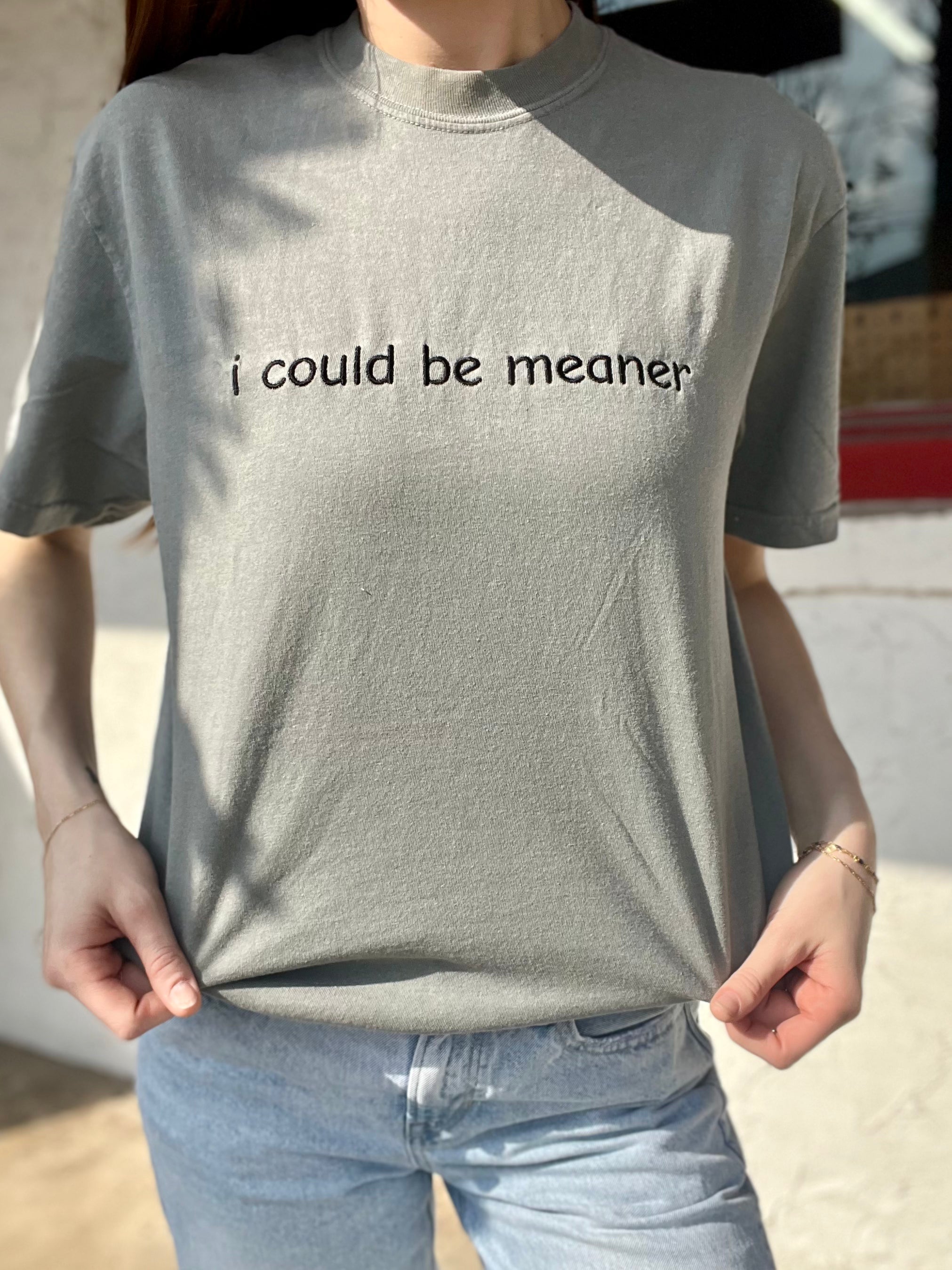 I Could Be Meaner Embroidery Graphic Tee