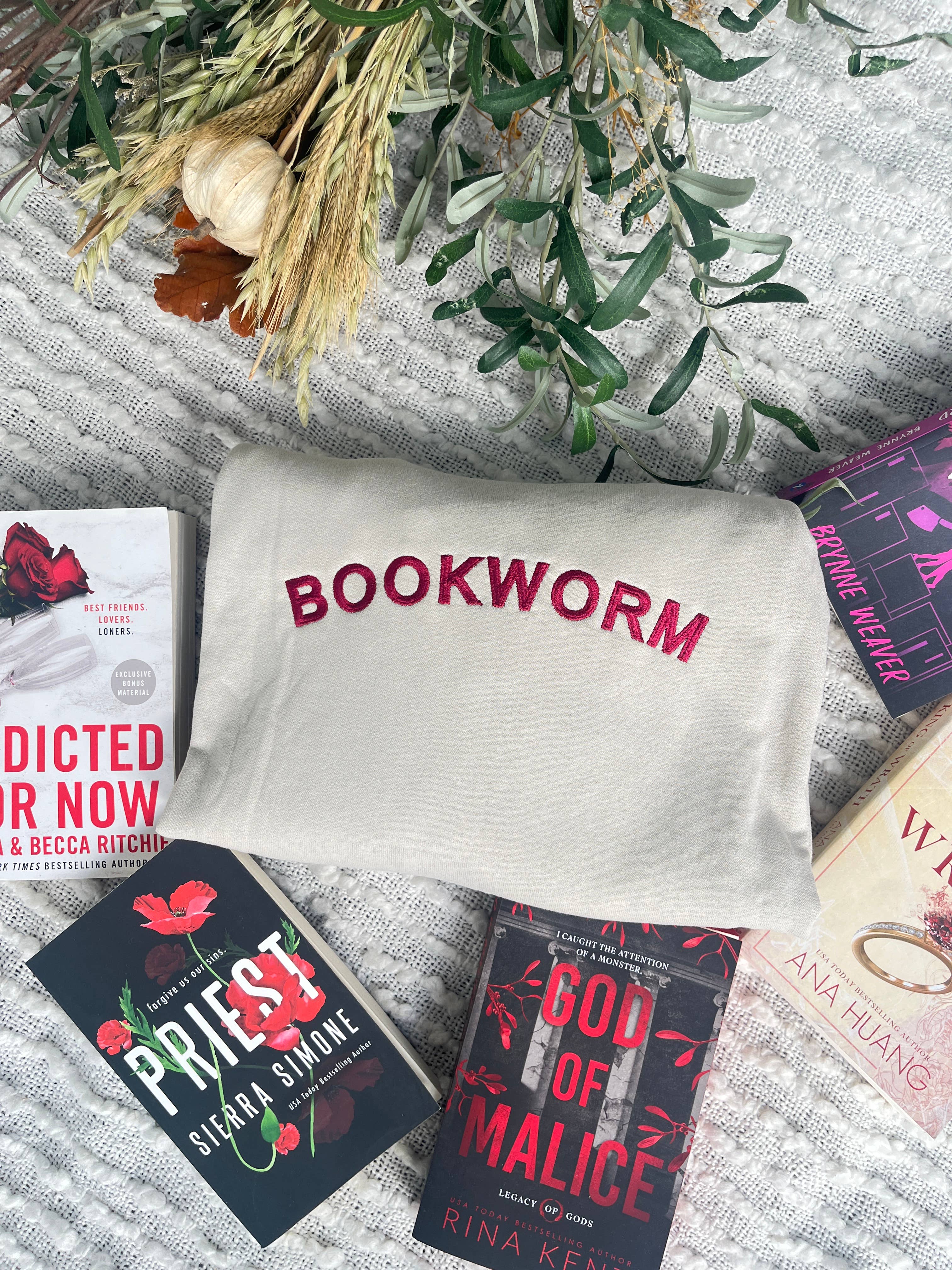 Get cozy and bookish with our embroidered sweatshirt for the ultimate reading experience. This comfy piece adds a touch of bookworm charm to any outfit.