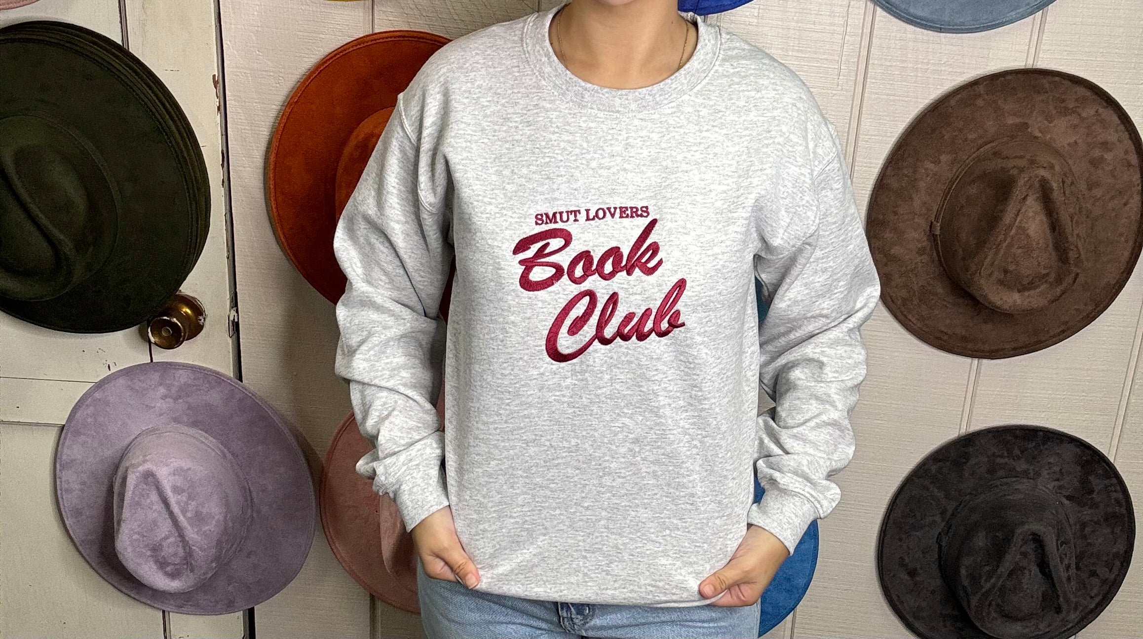 Join the Smut Lovers Book Club and show off your love for literature with this exclusive embroidered sweatshirt! Perfect for bookish folks, the maroon ink adds a pop of color to this comfortable unisex sweatshirt. Stay cozy while sharing your passion for reading with the world!