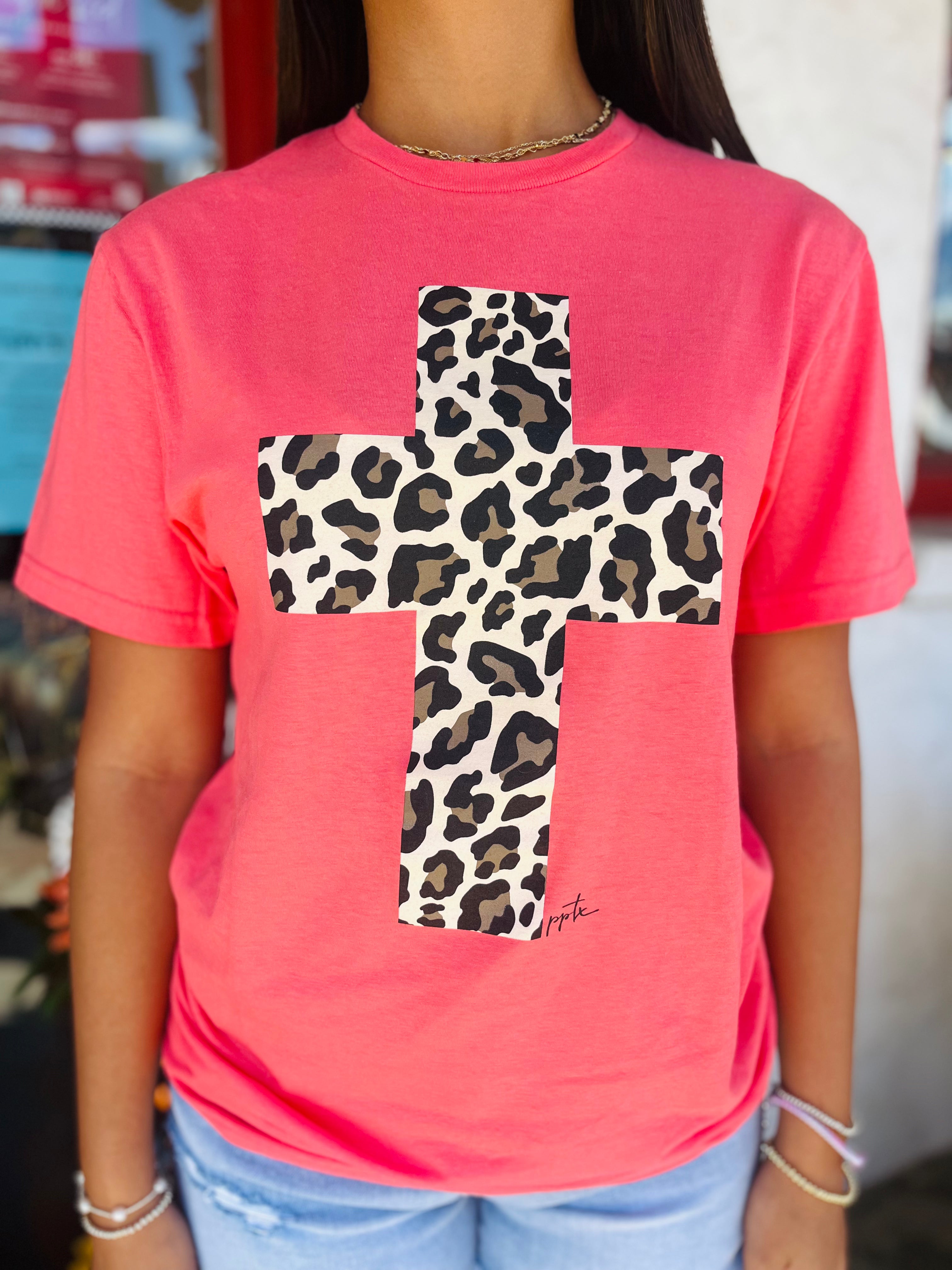 This coral leopard cross tee is not only super soft, but it also features a faith-based design that is professionally screen printed for a high-quality finish. With a unisex fit, this tee is perfect for anyone looking for a comfortable and stylish way to show off their faith.
