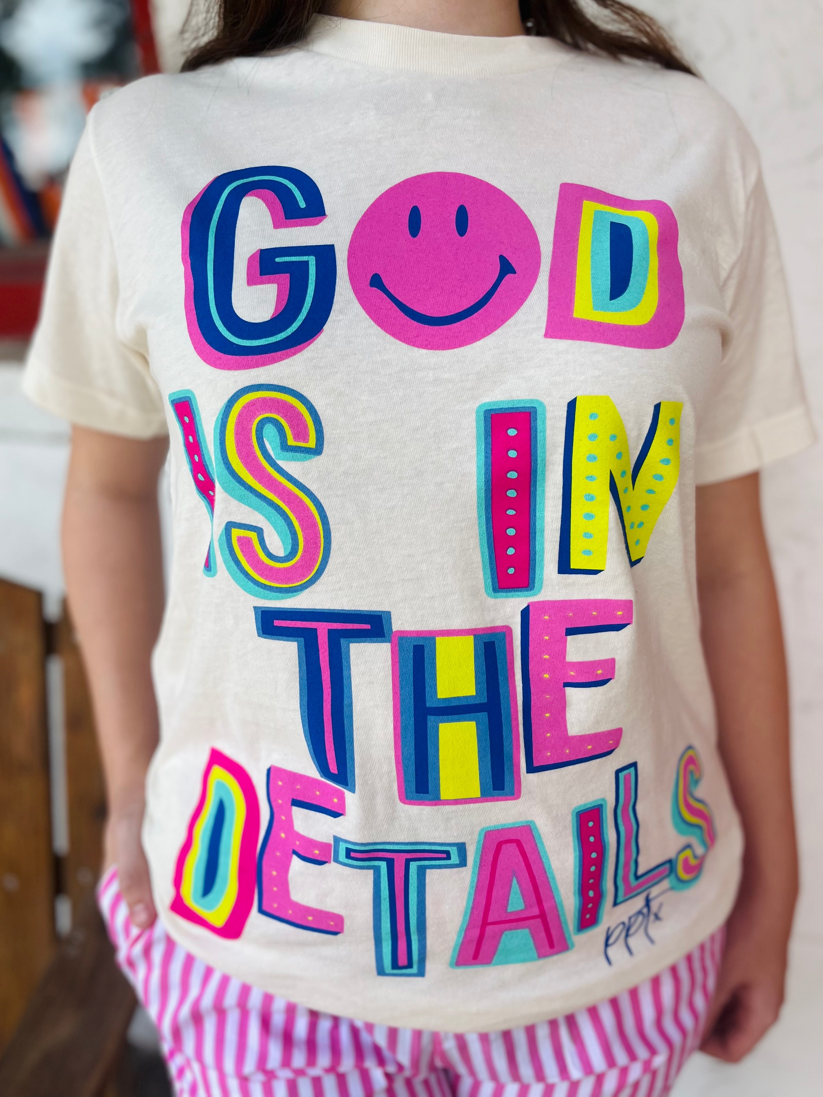 Celebrate life's little surprises with the God is in the Details graphic tee. This bright, colorful shirt is a reminder that even the smallest moments can hold something special. So, embrace the quirks, the humor, and the unexpected twists that make life so magical!