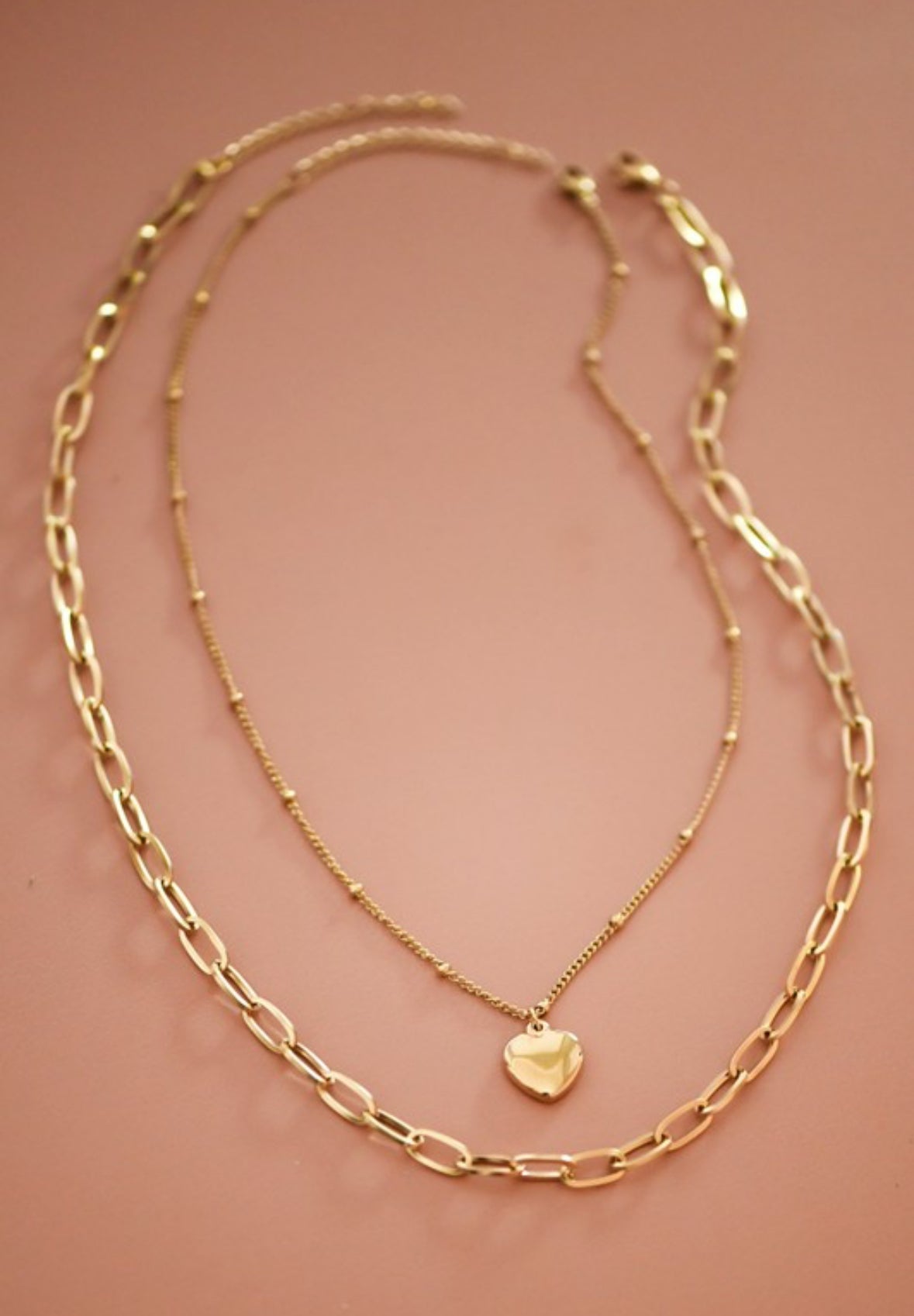 18K Gold Chunky Layered Necklace W/ Heart