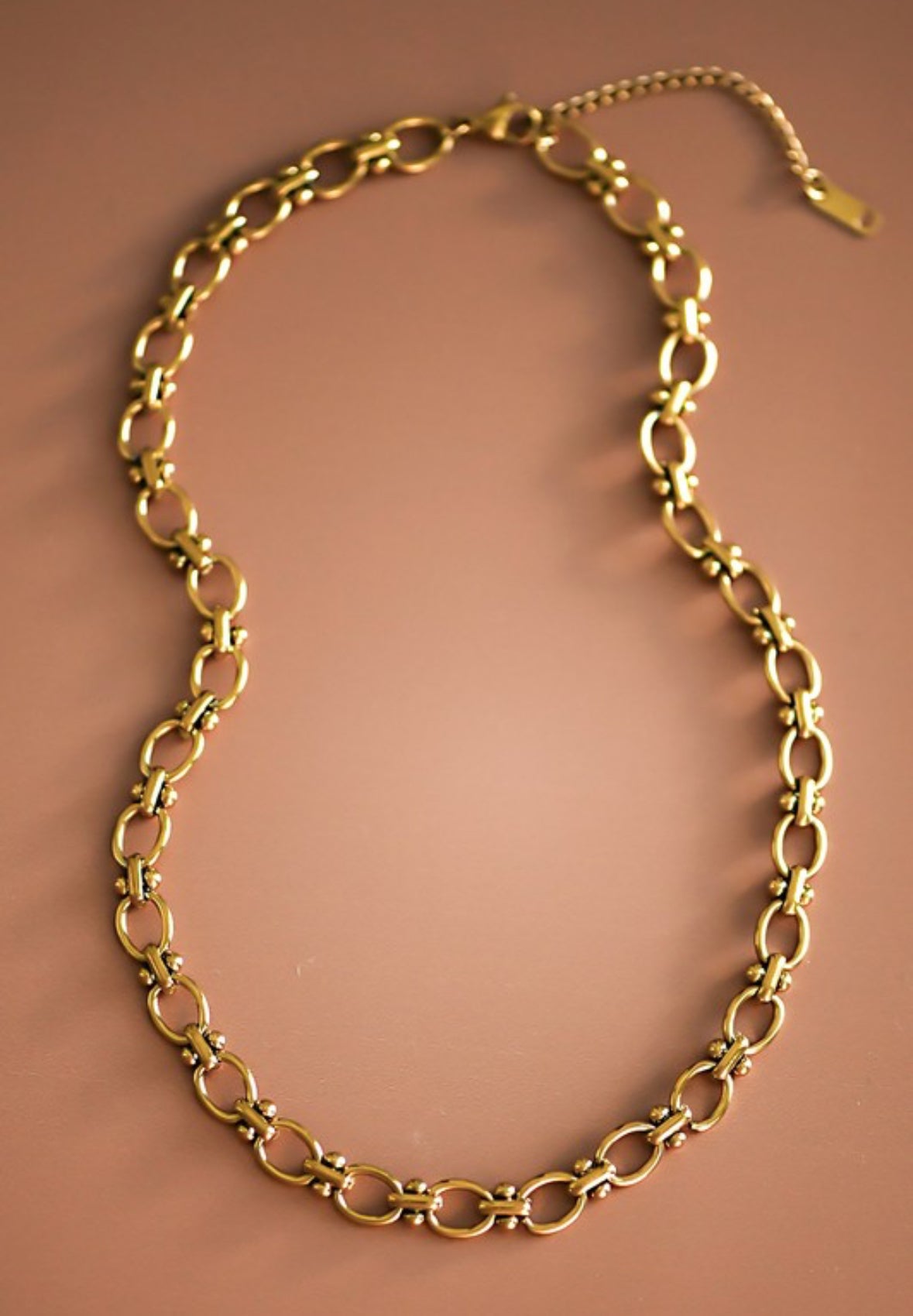 18 karat gold, dipped, stainless steel, oval chain necklace. Approximately 18 inches long, including the extender. This necklace is waterproof and sweat proof, as well as fade resistant, and tarnish resistant.