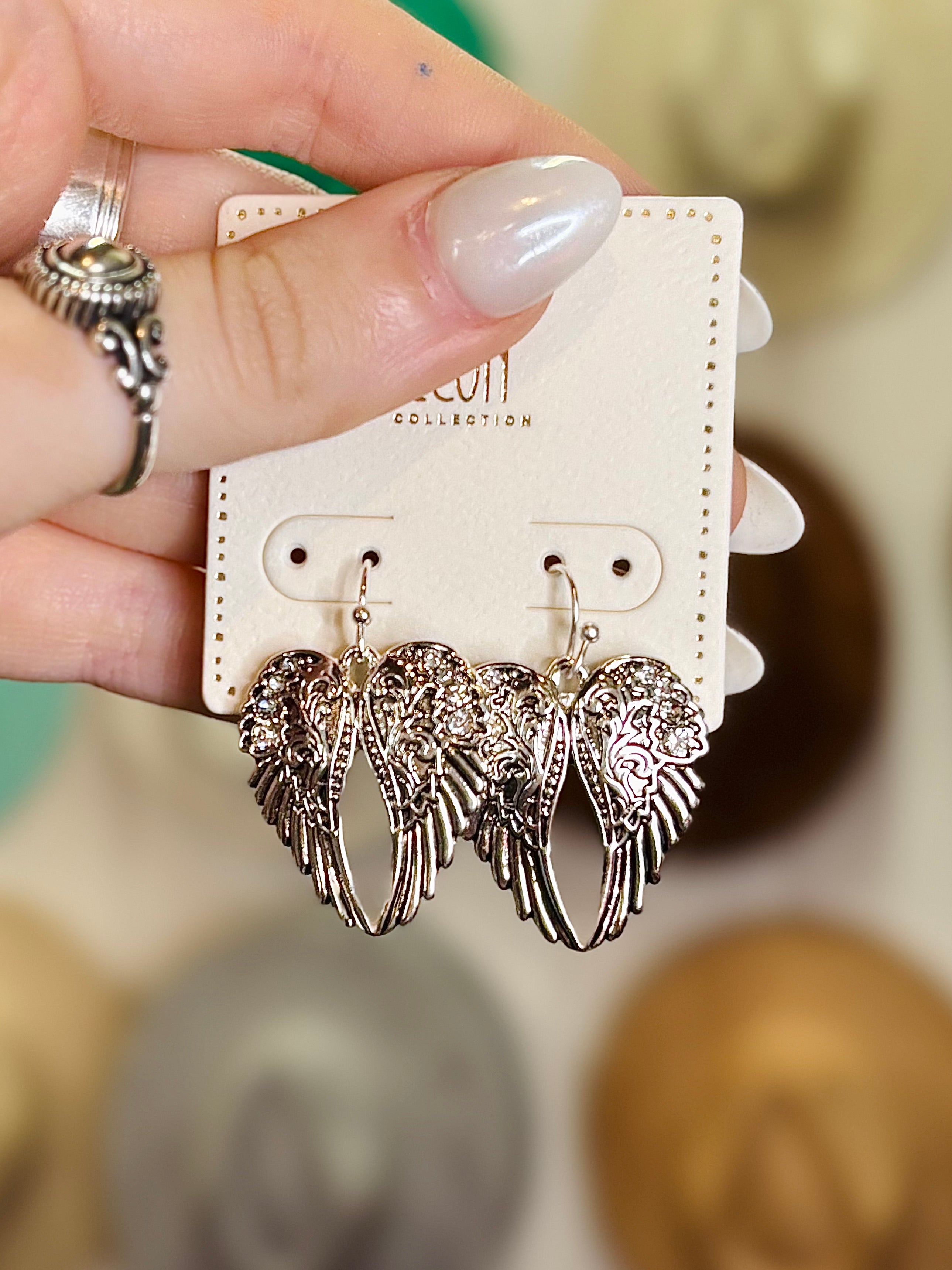 Unleash your inner angel with our stunning silver Angel Wings earrings! Each earring features intricately detailed wings that will add a touch of heavenly beauty to any outfit. Elevate your style and let your spirit soar with these exquisite earrings.