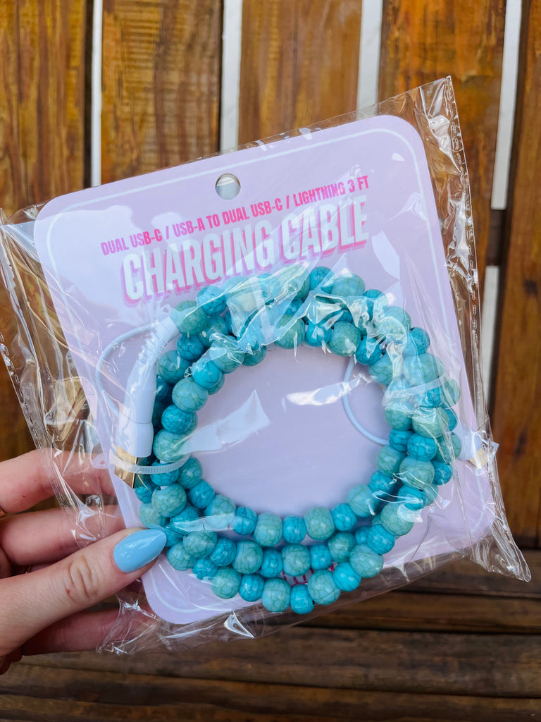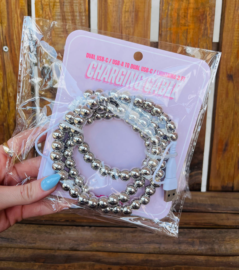 "Charge your devices with ease and style using our cute and fun Beaded Charging Cables. With both USB and USBC ports, you can easily connect and power up your devices. Plus, the stylish beaded design adds a playful touch to your charging routine. No more boring cables!"