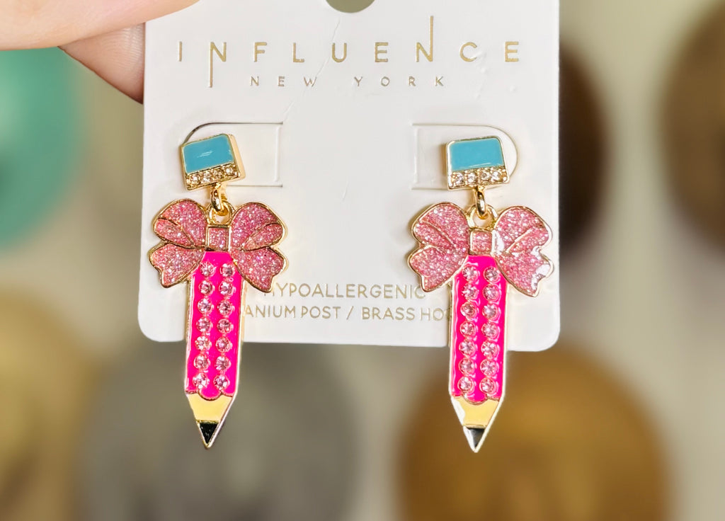 Add a touch of sophistication and style to any teacher's outfit with our gold teacher earrings. Featuring a variety of colors, school supplies, and letters, these earrings are the perfect accessory for any educator. Show off your passion for teaching with these elegant and eye-catching earrings.