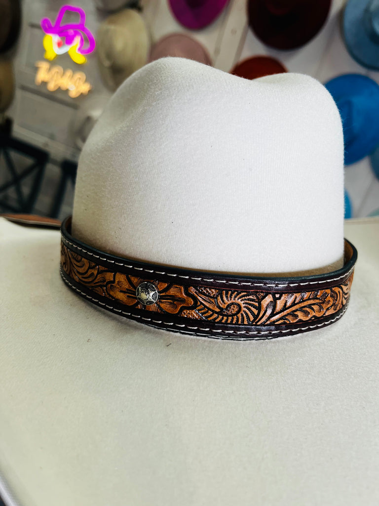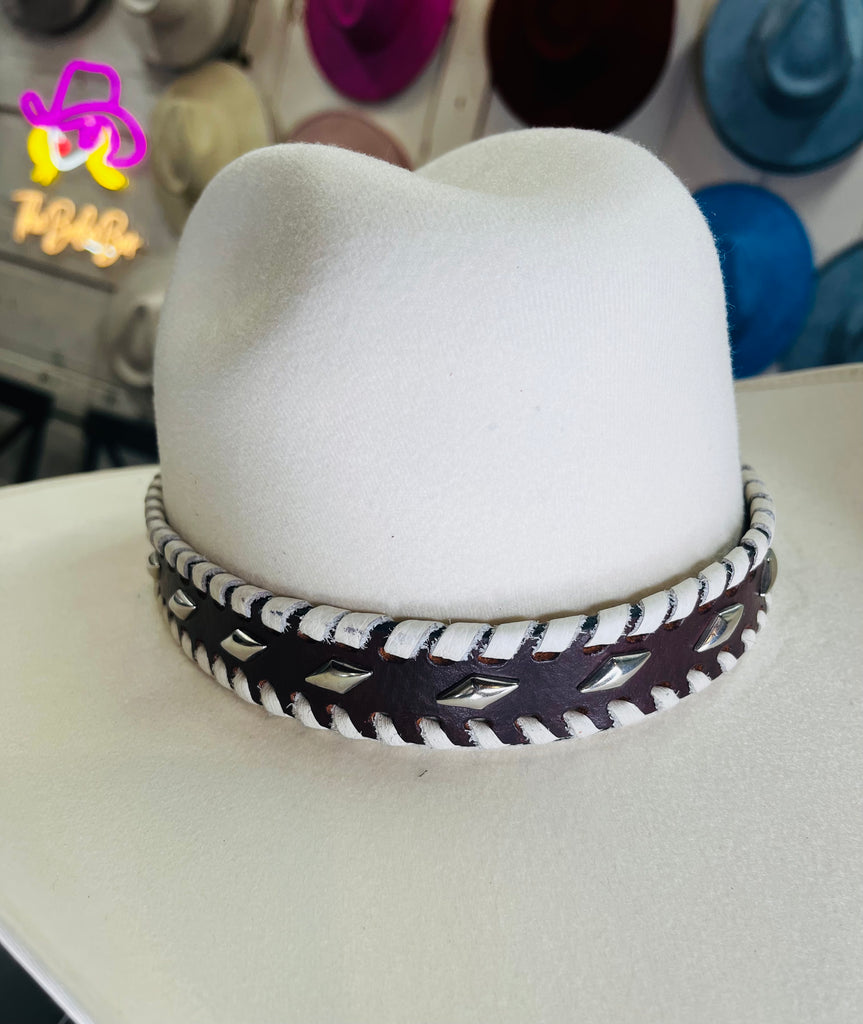 Boost your style with our genuine leather hat bands featuring unique designs and stud detailing. Choose from multiple styles to add a touch of sophistication to any hat. Made with quality materials for a durable and stylish accessory.