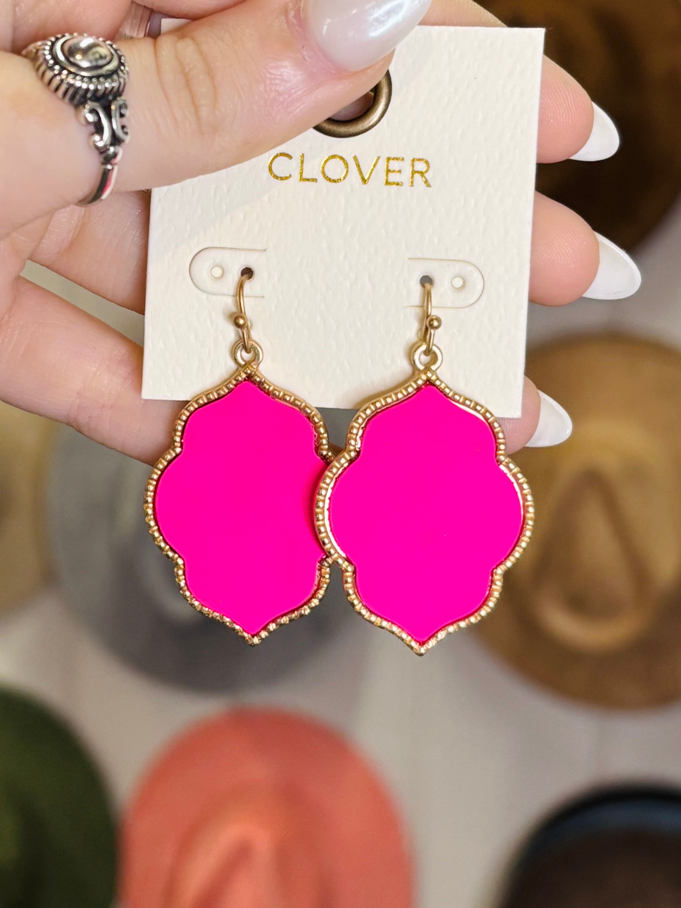Elevate your style with our Pink Clay Dangles! These elegant gold earrings feature a hot pink clay center, adding a touch of cuteness to any outfit. A must-have for any fashion-forward individual looking to make a statement.
