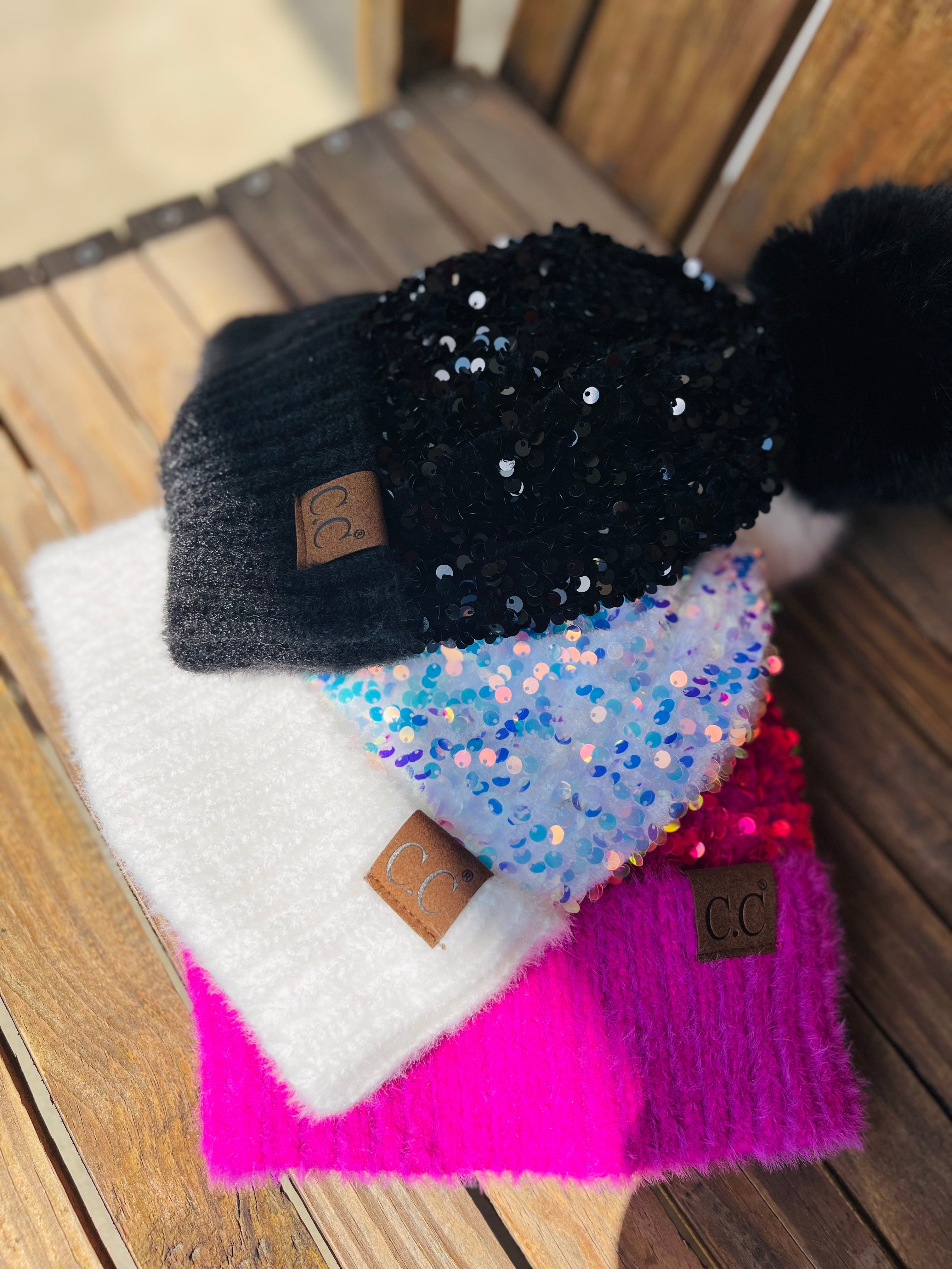 Introducing the Sequin Beanie, the perfect blend of sparkle and warmth. This beanie features sequins for a touch of glam, along with a puff on top for added cuteness. Stay stylish and cozy with this super cute beanie!