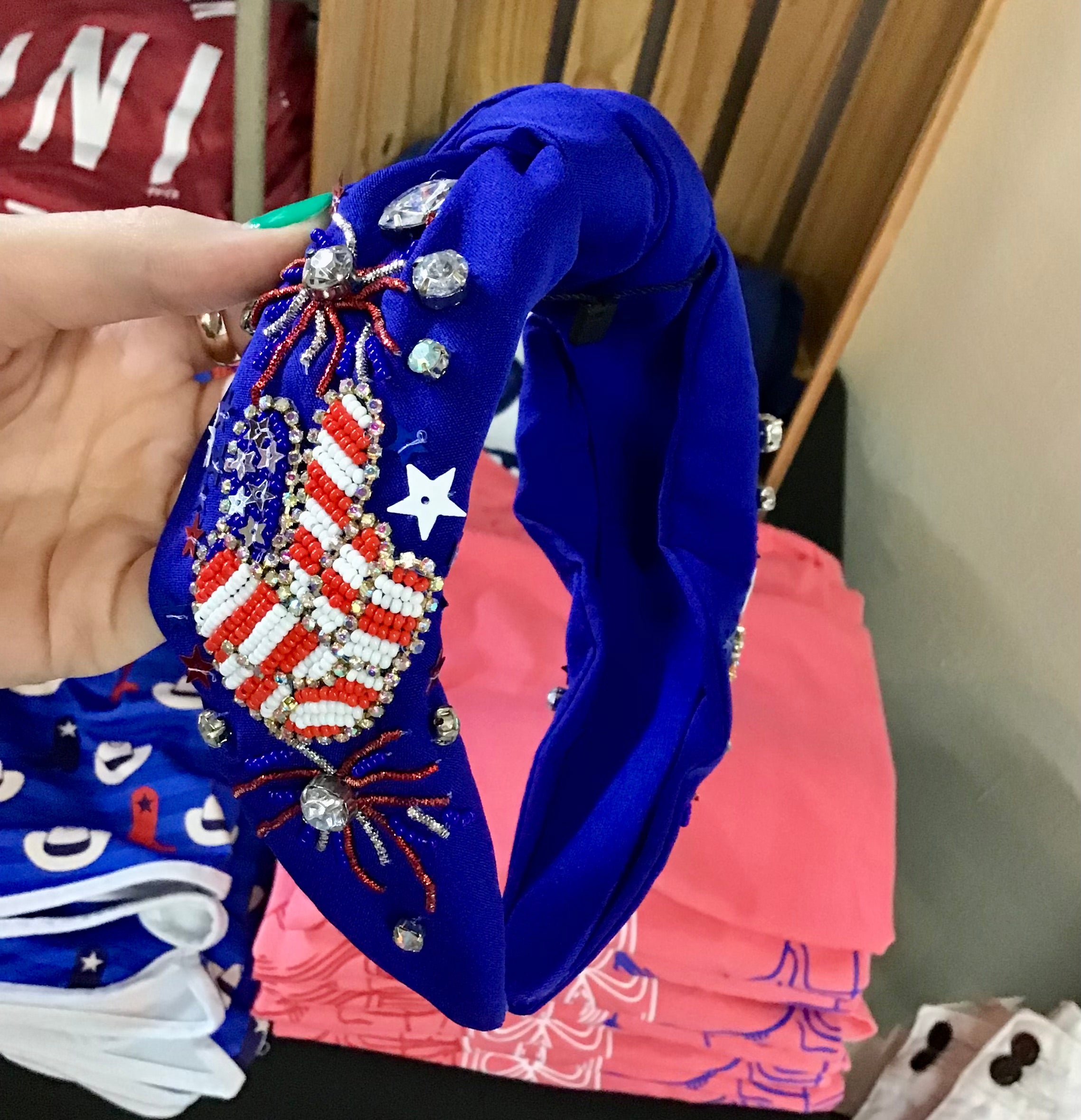 Unleash your inner patriot with our Stars and Stripes headband! Made with red, white, and blue colors, this headband will add a touch of American spirit to any outfit. Perfect for 4th of July celebrations, sports events, or just a casual day out. Show your love for your country with this stylish and comfortable headband!