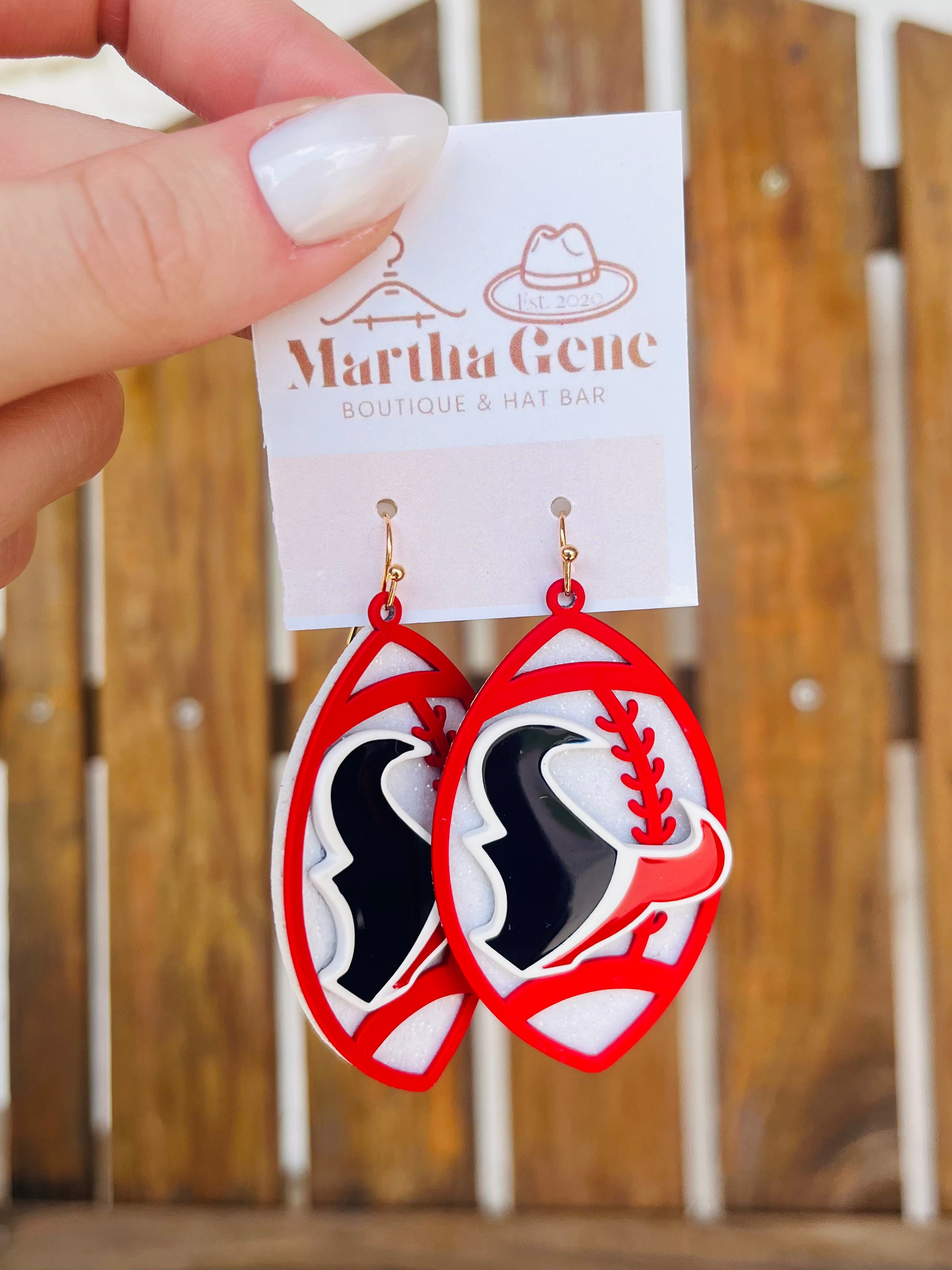 "Show off your love for the Texans with these glittering teardrop earrings. Featuring the iconic team logo and made with lead and nickel-free materials, they're the perfect accessory for any game day outfit. Sport in style and comfort with these unique earrings. Go Texans!"