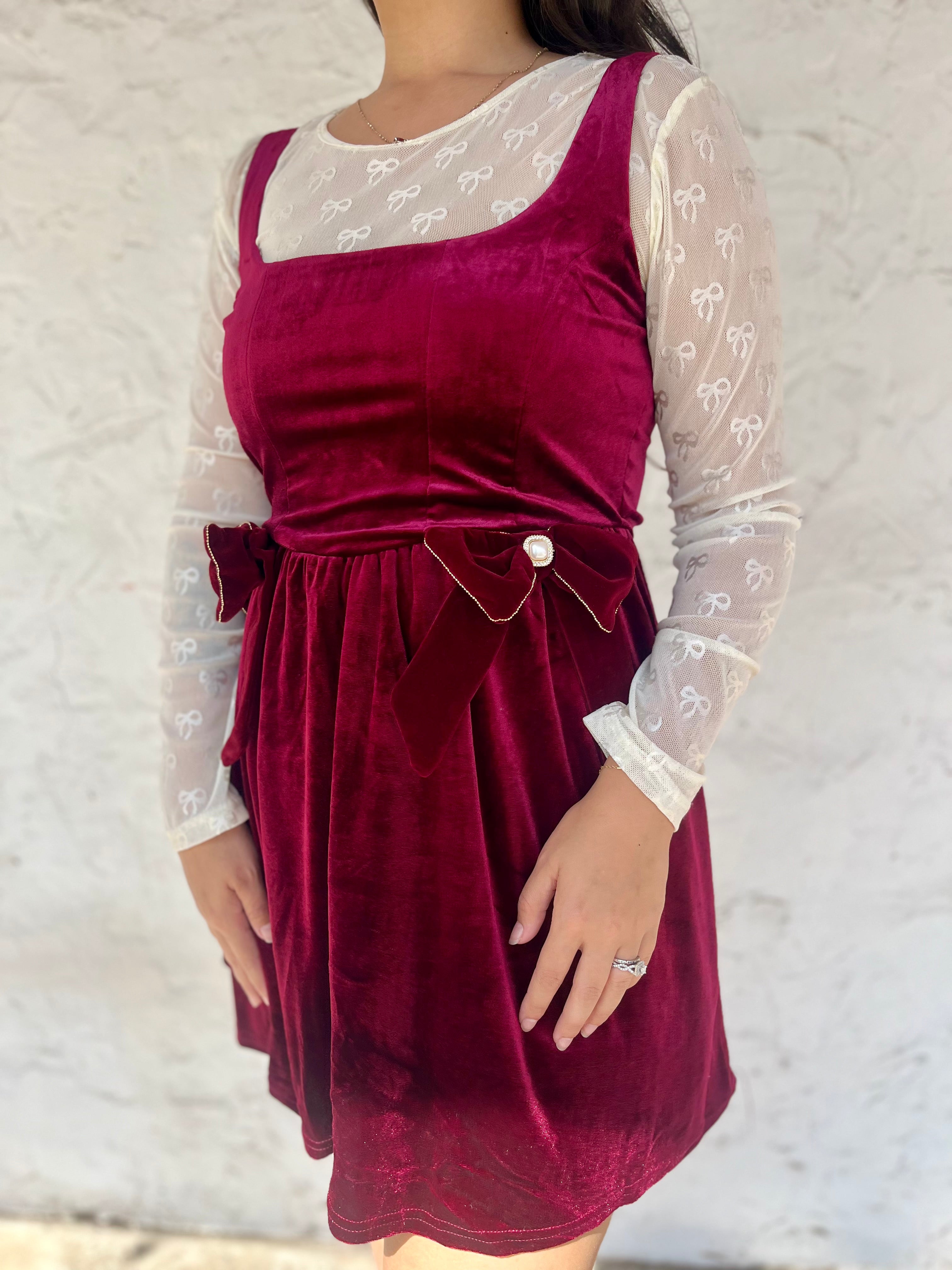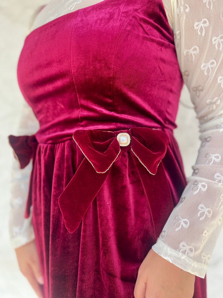 Get ready to turn heads in our Velvet Dreams Dress! Made of luxurious magenta velvet, this dress features a charming bow adorned with pearls and gold. With double lining for added comfort, you'll feel like you're in a dream wearing this dress. (Slay effortlessly in this dreamy dress!)